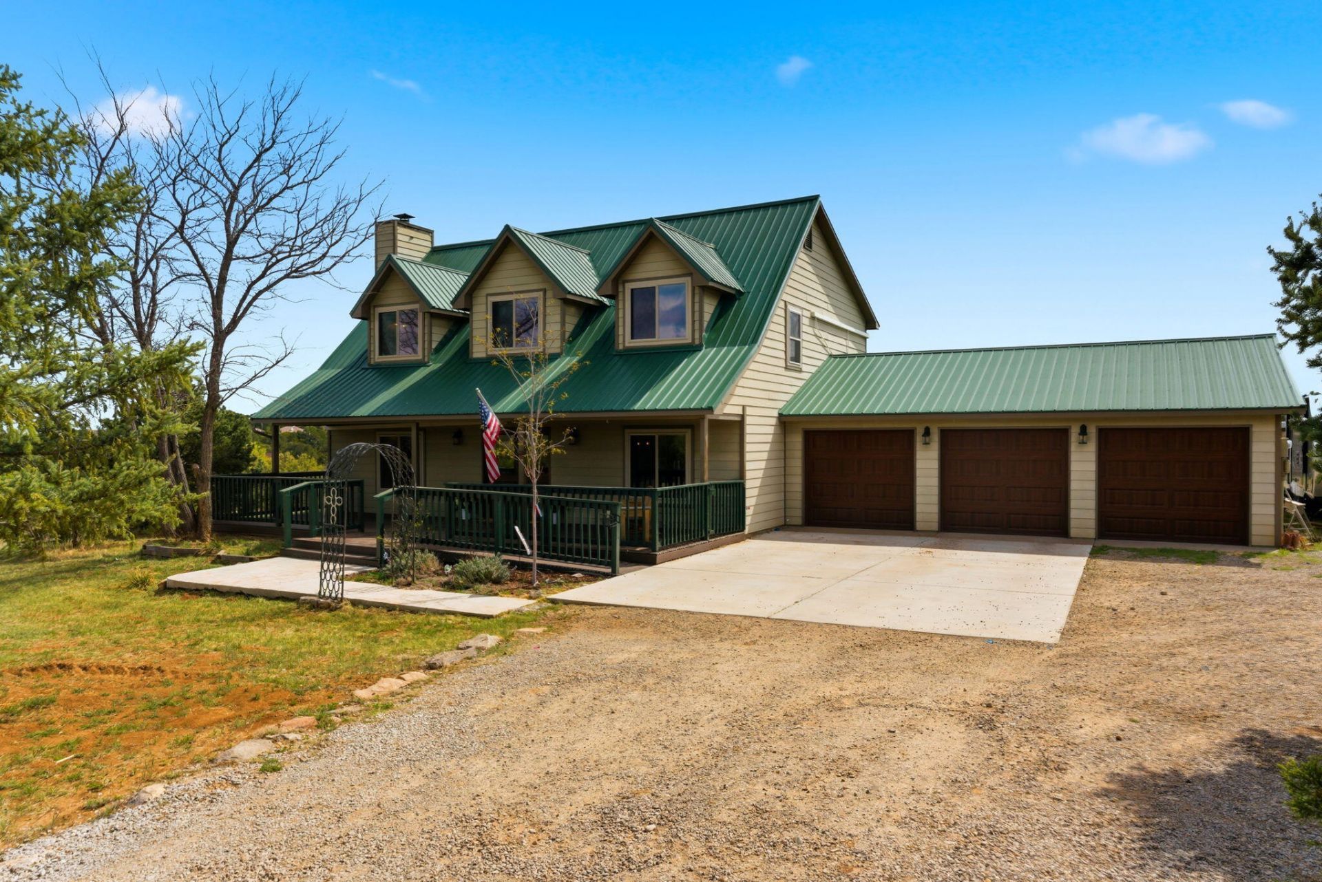 Escape to elevated country living on 2 acres with breathtaking Sandia Mountain views and direct access to nearby riding trails. Arrive home to sunlit interiors, rich woodwork, and beam accents, where a thermostat-controlled pellet stove creates effortless comfort. The updated kitchen invites gathering with a movable island and modern wifi enabled appliances. Downstairs offers refined universal design with wide doors and an elegant accessible bath. The primary suite has a luxurious bathroom with freestanding soaking tub and separate glass shower. Enjoy peace of mind with a 2019 metal roof, 2020 mini splits, Entranosa water, and nearby fire hydrant and station. Complete with a horse arena and barn with featuring electric and automatic waterers.
